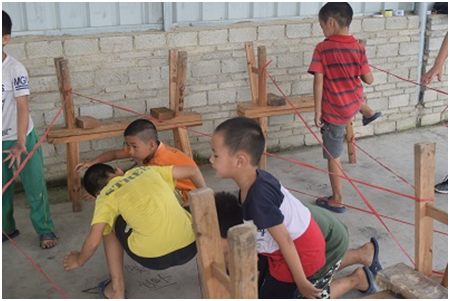 運動會圍繞“趣味”開展,把國學知識與當地傳統文化融進游戲中,在充分考慮孩子們的興趣、體能的基礎上,志愿者們設計了寓教于樂、智體合一的活動項目。考驗漢字書寫功底的“遨游天際”紙飛機放飛項目,考驗快速口算能力的“珠聯數合”,考察詩詞成語等基本文化素養的“三人游”、“趣味投壺”、“障礙賽”等比賽項目深受孩子們喜歡。“趣味投壺”比賽是根據古時雅士宴飲游戲結合當地古意濃厚的村風設計的,孩子們在壺前一改活潑好動的特點,凝神靜氣、不急不躁、耐心瞄準壺口,頗有“君子無所爭,其爭也君子”的模樣。這個項目不僅鍛煉耐性,還讓孩子們親身體會了傳統文化的精髓,對謙讓有禮的傳統美德有了更深認識。