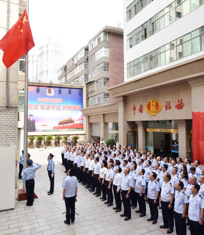 在升國旗、奏唱國歌儀式后,甘肅省委常委、副省長宋亮和國家稅務總局第28聯絡督導組常務副組長王滿平為新機構揭牌,標志著原甘肅省國家稅務局、甘肅省地方稅務局正式合并。