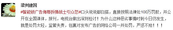 針對此次“凱迪仕智能鎖”“拆彈磚家”廣告事件,有網友認為平臺應該承擔相應責任。