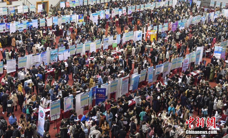山東大學(xué)2019屆畢業(yè)生就業(yè)“雙選會(huì)”吸引眾多大學(xué)生前來應(yīng)聘。(中新網(wǎng))