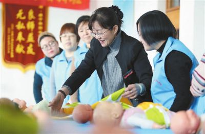 職業培訓學校老師在給學員講解育嬰知識。(來源:新華社記者 王曉 攝)