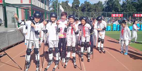 除了在雪場教學,她走進校園,給孩子們講述冰雪運動的故事。雖然一開始免不了吃“閉門羹”,但現在已有不少學校搶著邀請她去宣講。當然,其中的難處不言而喻。