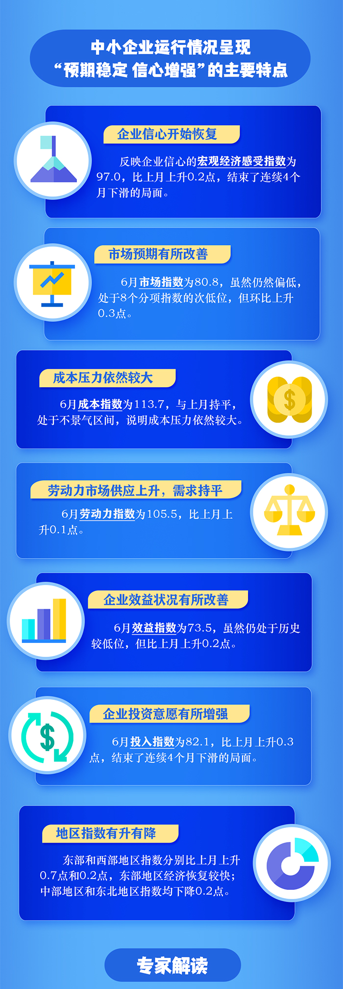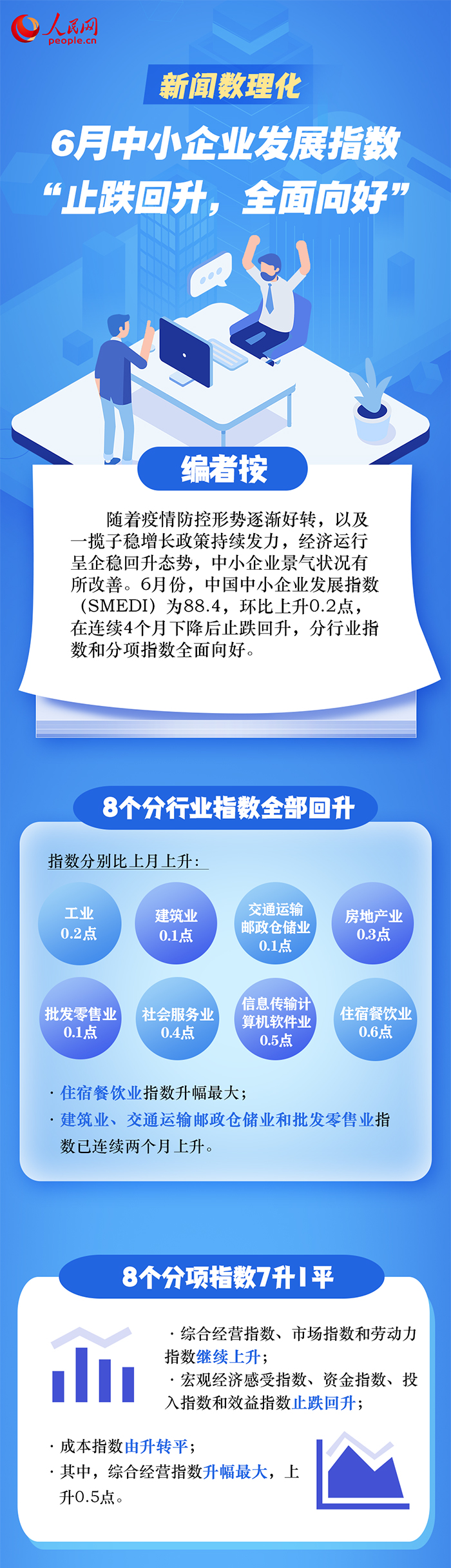 中國中小企業協會近日公布我國中小企業經濟運行情況。數據顯示,6月份,我國中小企業發展指數為88.4,環比上升0.2點,止跌回升,分行業指數和分項指數全面向好。