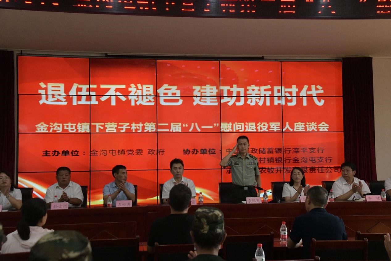 8月1日下午,灤平縣金溝屯鎮下營子村聯合愛心企業中國郵政儲蓄銀行灤平支行、灤平盛陽村鎮銀行金溝屯支行和承德久財農牧開發有限責任公司共同舉辦了“退伍不褪色 建功新時代”第二屆“八一”慰問退役軍人座談會。活動現場,大家歡聚一堂,共同慶祝中國人民解放軍建軍95周年,共敘魚水深情,并為優秀退役軍人頒發榮譽證書。 王海琦 郎朗 攝